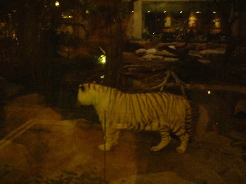 食事をする場所は中庭を四方で囲むような形になっており、その中庭にはホワイトタイガーが放し