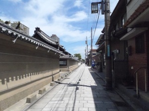 スタート地点、阪神出屋敷駅。土曜の午前中でしたが人通りは少ない感じでした。静か